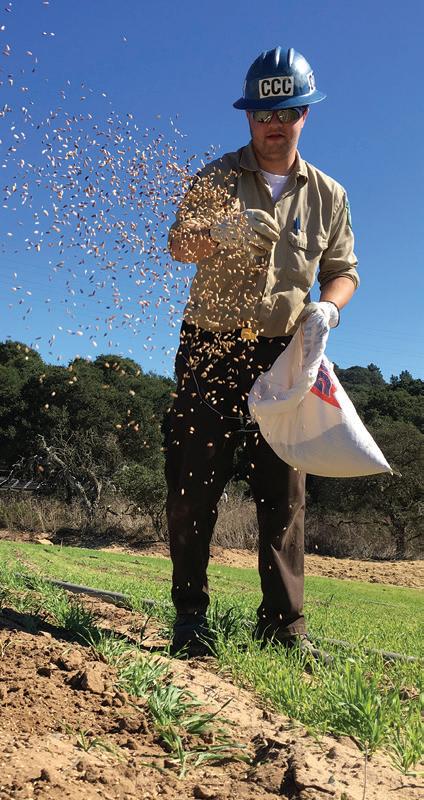 Even that isn’t the end of the work. e steepest slopes, now taken out of production, will be returned to the native oak woodland, coastal scrub, and chaparral that thrived on these hills decades ago. at means hundreds of native wild owers, trees and grasses need to be grown, nurtured, and planted with the help of many volunteers.
