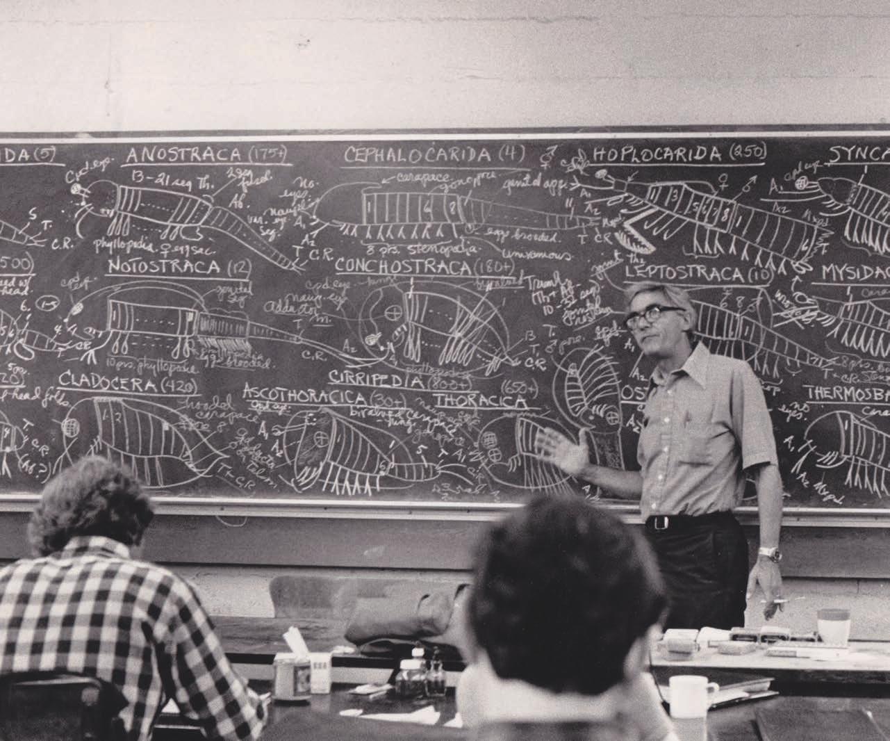 Don Abbott describing the evolution of the Crustacea, Hopkins Marine Station, 1975 (by Mark Silberstein).
