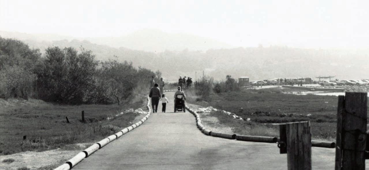Clockwise from top left: Mark hosting the California Coastal Commission on the Elkhorn Slough Safari, including Executive Director Peter Douglas and Commissioners Lou Calcagno, Tammy Grove, and Sara Wan. Professor John Pearse, Urechis in hand, on the Elkhorn tideflats with Mark and Jane Silberstein. Diane Porter Cooley, one of Elkhorn Slough’s greatest champions, once called Mark “the Moses of the Mudflats.” Wheelchair-accessible trail at Kirby Park, 1991 (by Mary Warshaw). Mark with Diane Porter Cooley’s roommate from Stanford, Supreme Court Justice Sandra Day O’Connor, in 2013.