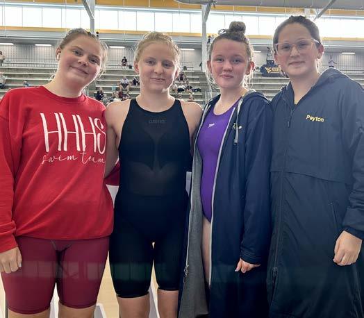 Jenna Stout, HHHS Sophomore 5 PR times; Ashton Walker, Sophomore 7 PR times; Chloe Foreman, HHHS Incoming Freshman 9 PR times; Peyton Greathouse, HHHS Incoming Freshman 9 PR times Photo by Gabi Strickland Walker, L-R: Stout, Walker, Foreman, and Greathouse.