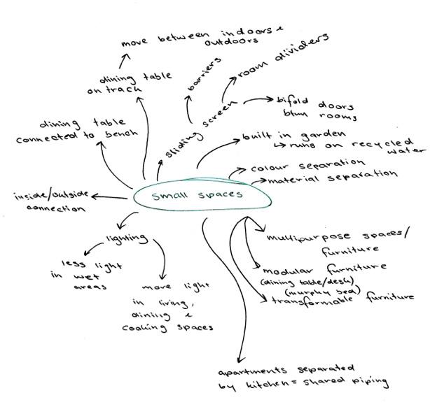 This week’s focus was the scale plan and redesigning the floorplan. With key focuses on privacy and open communal spaces, the apartment has been split in half, the west side for living, the east for personal use. Our next objective was to determine our room designs and how we could create a functional space using speculative design. I brainstormed ways that we can incorporate modular and multifunction furniture and join the indoor and outdoor space cohesively.