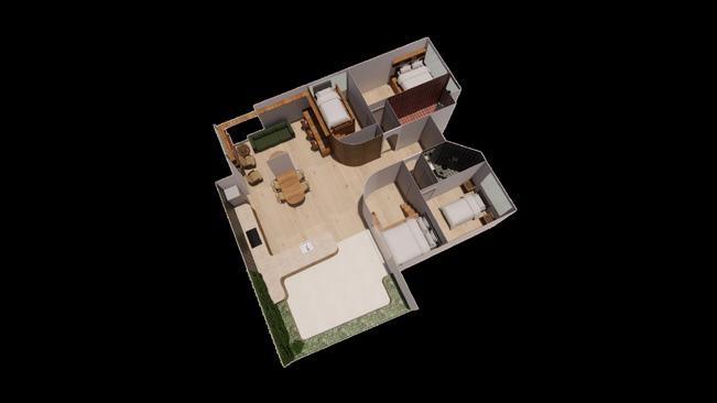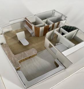 lecture on interiority, I became more comfortable with our design. I realised that with our understanding that the apartment will be for students, there will always be new occupants, and creating a personalised space for 4 people wasn’t, in reality, a functional idea. The space we created is neutral and usable for all people, grounding our design in reality.