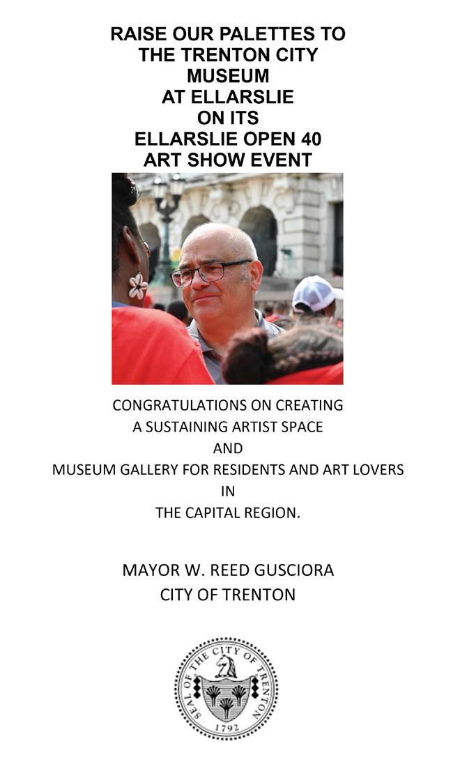 The 110 works on display were selected with care and expertise by juror Kimberly Camp from 550 entered pieces, then were laid out and hung by our dedicated team of exhibition volunteers. Join us at Trenton City Museum to explore the compelling works that are a testament to the cultural vitality of our surrounding community. We invite you to dig into this exceptional display –and perhaps come back another time or two to catch EO41 and all that Trenton City Museum offers!