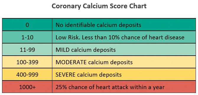 aproximadamente 30 años. Luego, en 2018, decidió hacerse su primer escáner cardíaco oficial, una prueba de imagen no invasiva que mide la cantidad de calcio en las paredes de las arterias coronarias. Un buen puntaje de calcio coronario es cero, lo que indica que no hay depósitos de calcio en el corazón. Una puntuación más baja generalmente significa un menor riesgo de enfermedad cardíaca. ¡La puntuación inicial de Larry fue de 1400! Cambios en el estilo de vida