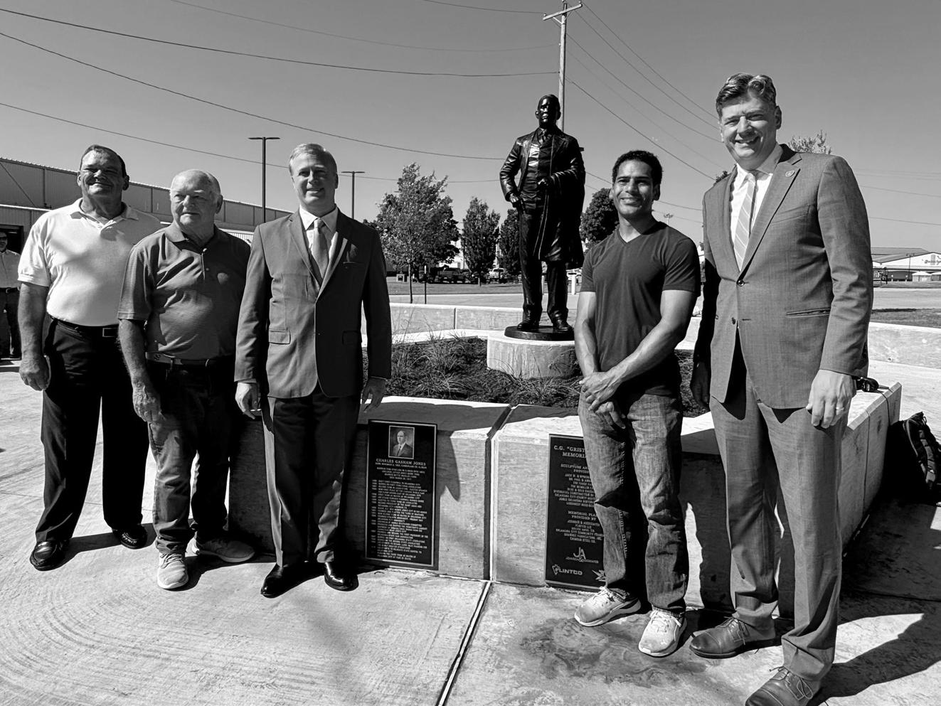 miembro de la junta de la Sociedad Histórica, Brian Maughan. "Fue un líder en el traslado del capitolio estatal a la ciudad de Oklahoma, un campeón del desarrollo económico al traer ferrocarriles e industrias muy necesarias, crear miles de empleos y dedicarse al servicio cívico y al liderazgo. Como fundador de la Feria Estatal, es apropiado que su estatua ahora se erija en State Fair Park".