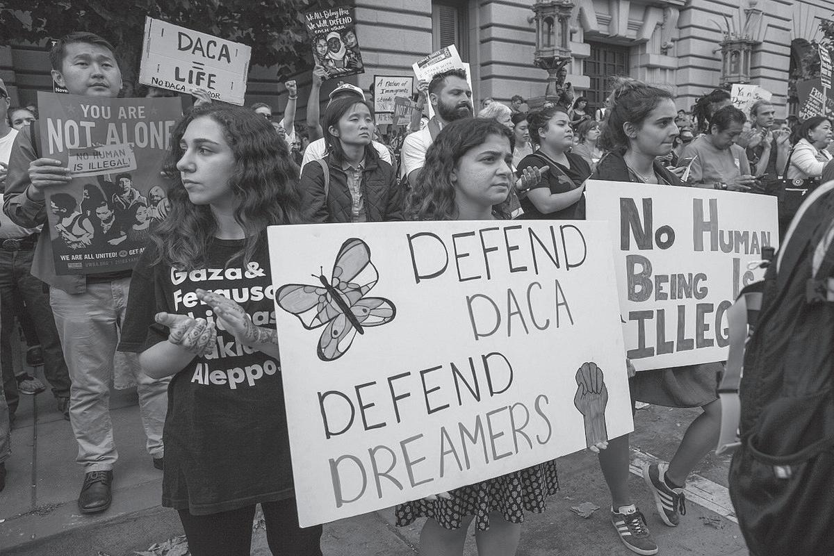 Cientos de personas se reunieron para una manifestación en San Francisco para protestar por la invasión rusa de Ucrania. Crédito: Peter Schurmann.