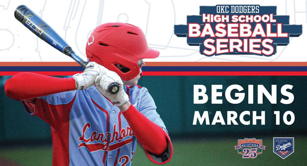 The OKC Dodgers High School Baseball Series gives teams and their fans a chance to have a “professional” experience complete with the use of batting cages, dugouts and state-of-theart scoreboards. Also, each school will have a professional team photo taken on the field prior to the game.