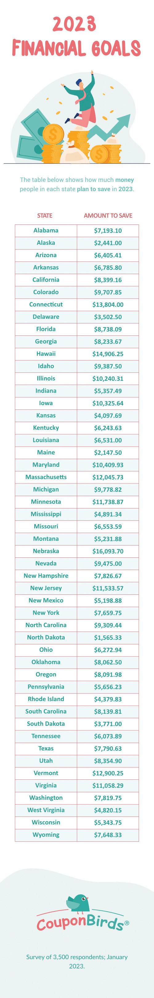 However, for those who have clear goals, particularly when it comes to finances, it is revealed that the average Oklahoman plans to save $8,063 (which would be $672 per month) in 2023. That is according to a survey of 3,500 Americans by real time coupon and deals discovery engine, CouponBirds. This compares to a national average savings goal of $8,082.