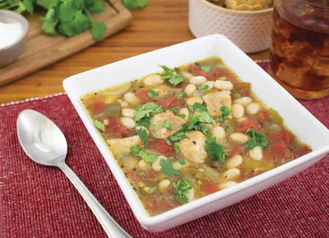 3. En una olla de cocción lenta grande, agre- gar los frijoles, la carne de cerdo y las cebol- las, el ajo en polvo, la maicena, el orégano, el comino, el jalapeño, la salsa de enchilada, los tomates, los chiles y el caldo. Cocinar por 6 horas en ALTO, o hasta que los frijoles estén tiernos.