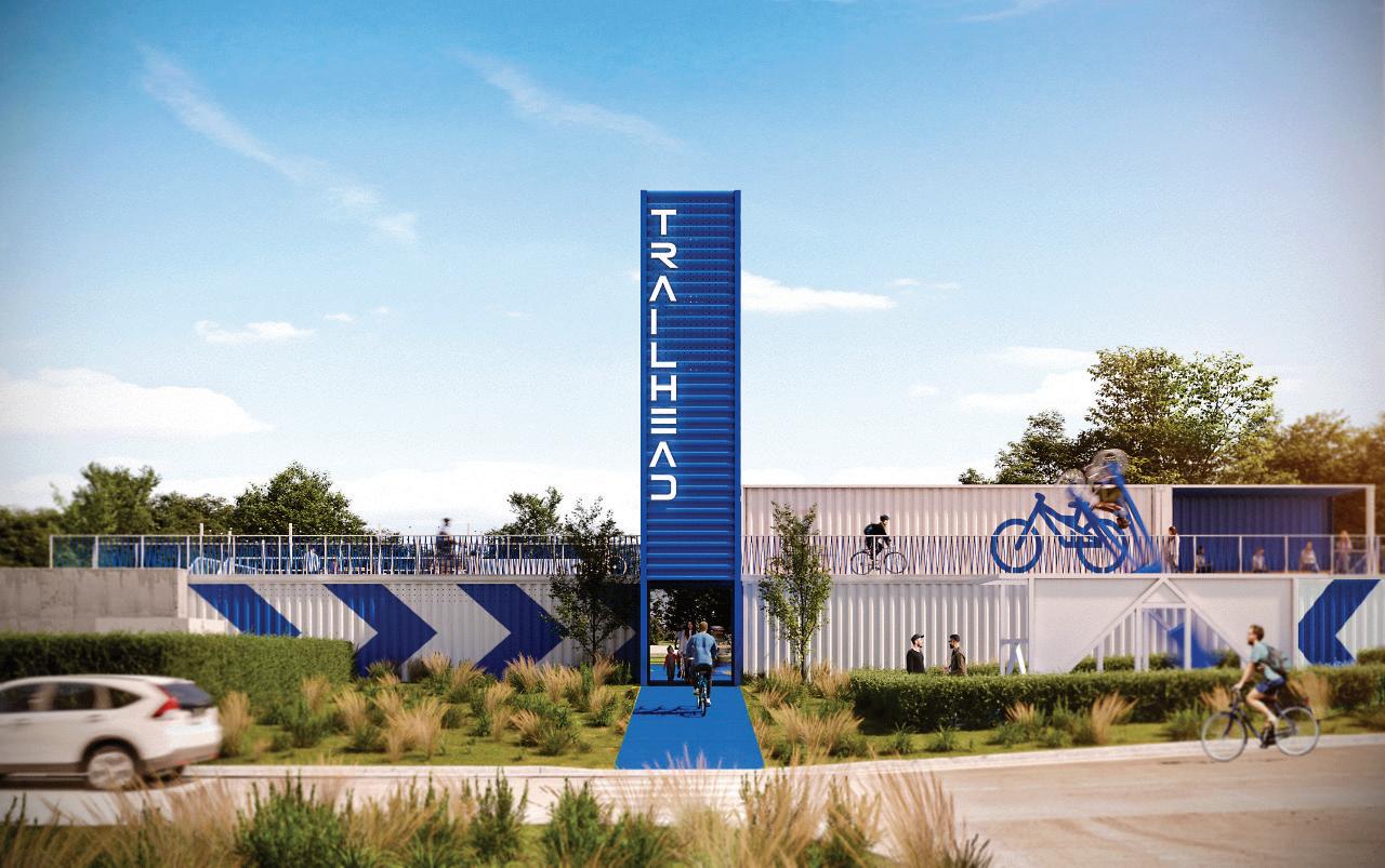 Slated to open in Spring, 2023, the Oklahoma Trailhead and Bike Park expansion will include a new bike pla za, an outdoor classroom, a commu nity garden, and play area, as well as paved parking. Shipping containers will be used to create a unique gath ering place that includes a welcome center, a nature center, and ADA re