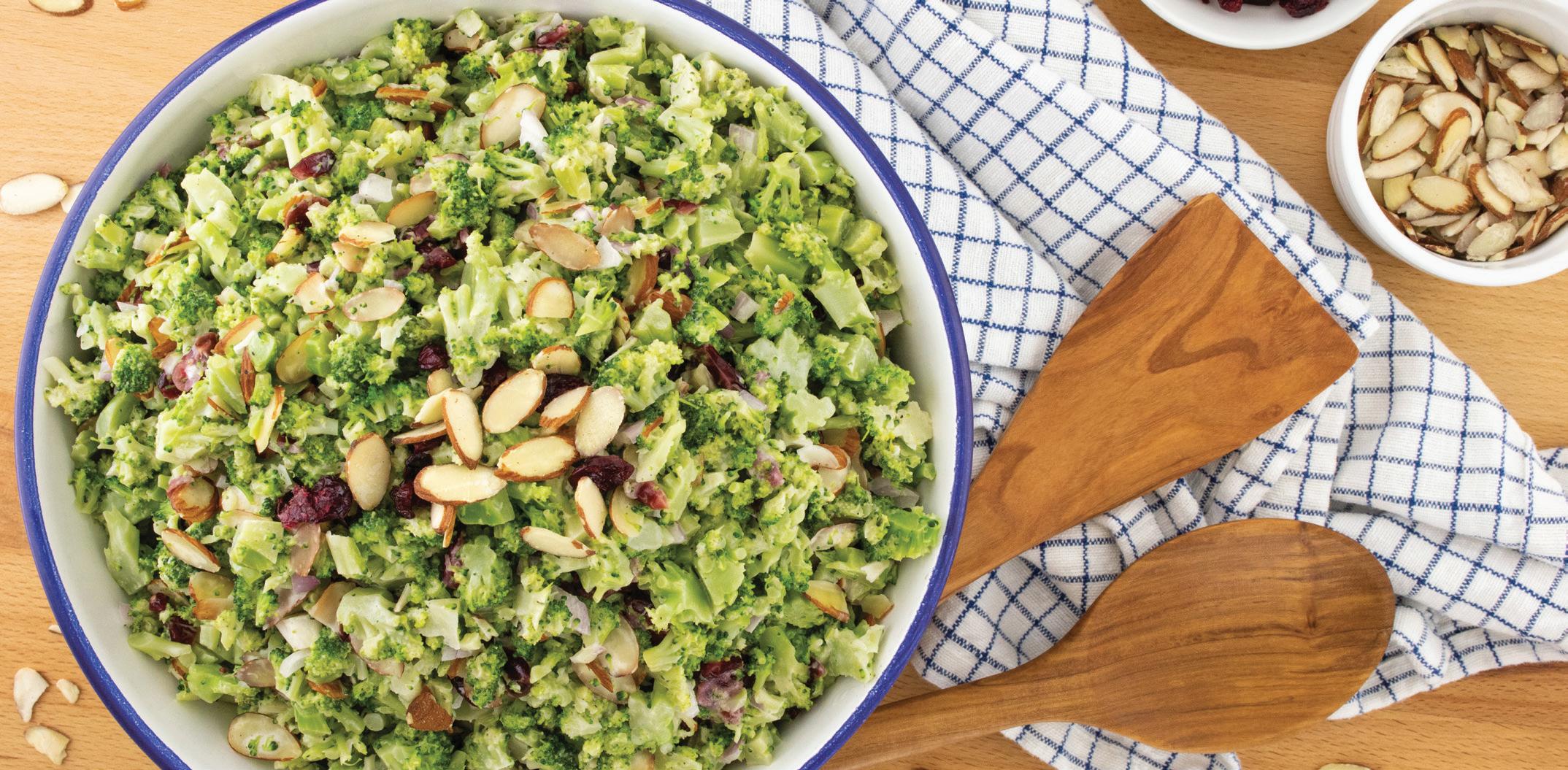 1. En un tazón grande, añadir la mayone sa, el jugo de limón, el vinagre, la miel y la pimienta. Mezclar para combinar. 2. Añadir el brócoli, los arándanos, la ce bolla y las almendras. Mezclar para com binar. 3. Refrigerar 1 hora antes de servir.