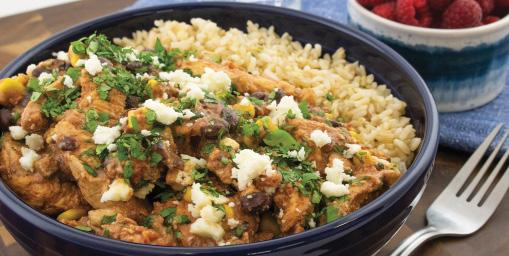 4. Servir sobre el arroz con queso y ci- lantro encima.