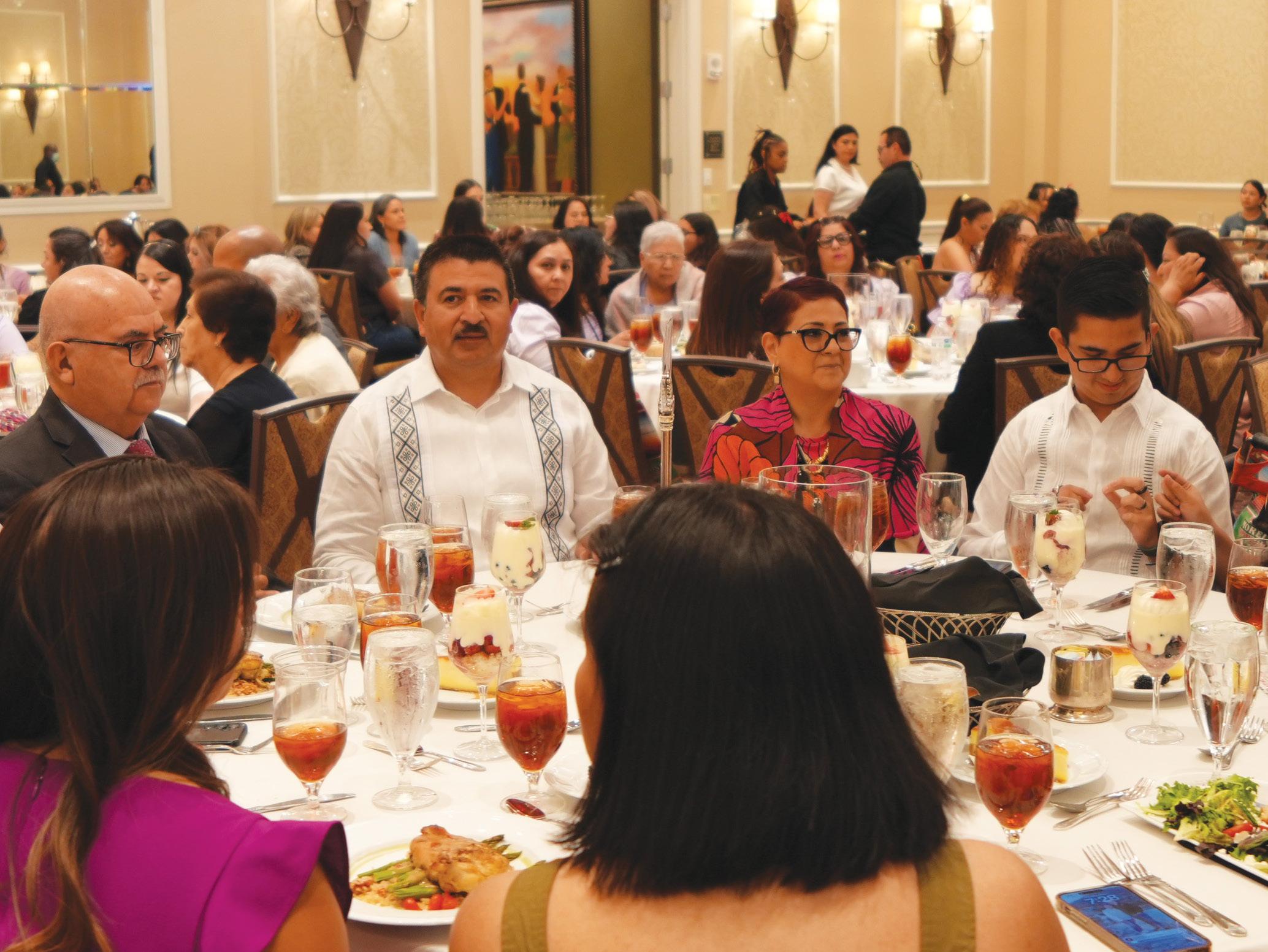 Dr. Reinaldo Diaz - Director of Adult Career Development y Norma Condreay - Directora de El Latino American entregando becas a mamás
