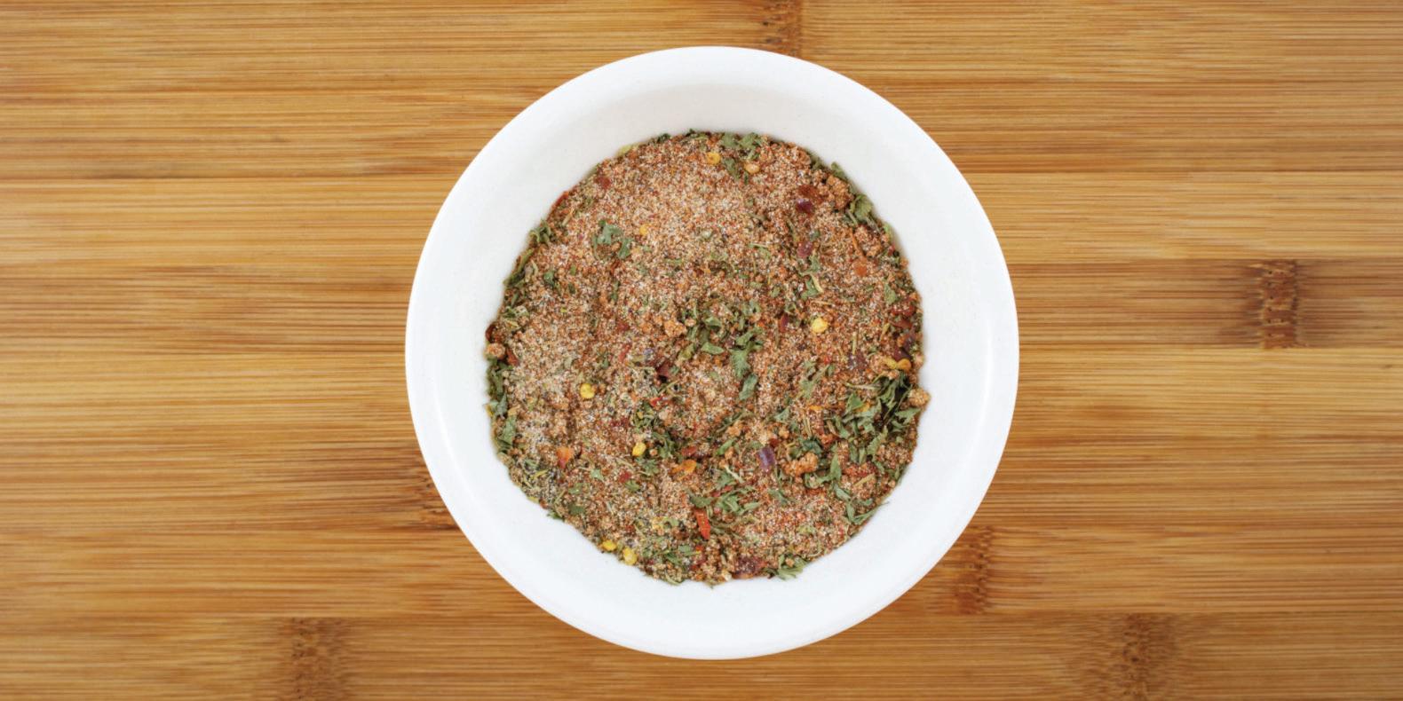 1. En un tazón pequeño, añadir todas las especies. Mezclar bien hasta que esté completamente combinado. 2. Usar inmediatamente o guardar en un recipiente hermético hasta que esté listo para usar.