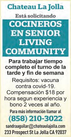 Ventas, Clasificados y Eventos. T: 619.426.1491 • sales@ellatino.net • 1105 BROADWAY SUITE #206 CHULA VISTA CA 91911 San Diego County’s Largest Hispanic Newspaper Cubriendo todo el condado de San Diego