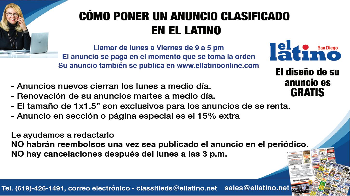 $3.00 dólares por carta EN CASO DE PAGAR CON CHEQUE, FAVOR DE HACERLO A NOMBRE DE: EL LATINO