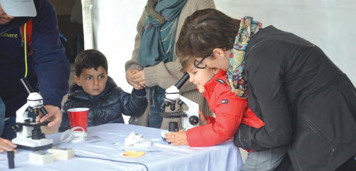 El apasionante y diminuto mundo molecular fue ‘descubierto’ por este pequeño y los jóvenes adolescentes que observan ‘el kit’ exhibido en la feria del conocimiento científico.