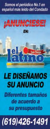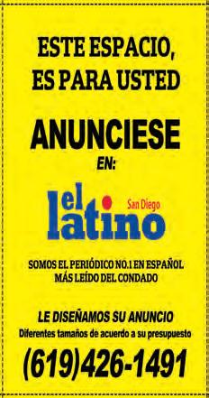 Ventas, Clasificados y Eventos. T: 619.426.1491 • sales@ellatino.net • 1105 BROADWAY SUITE #206 CHULA VISTA CA 91911 San Diego County’s Largest Hispanic Newspaper Cubriendo todo el condado de San Diego EDICIÓN 12 VOLÚMEN XXXV ESTABLECIDO EN 1988 www.ellatinoonline.com EJEMPLAR GRATUITO