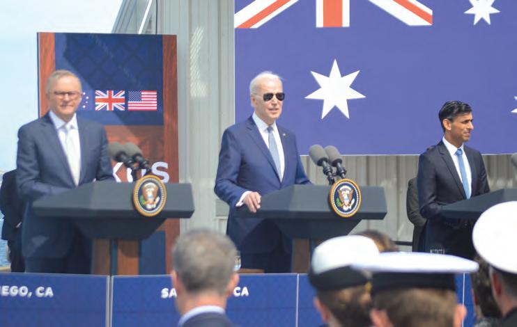 Los presidentes Joe Biden, Rishi Sunak, de Reino Unidos y Anthony Albanese, de Australia, abordan plan para las próximas dos décadas.