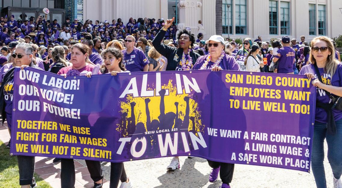 Los trabajadores están representados por SEIU Local 221, sindicato que agrupa a más de 13,000 empleados del sector público en los condados de San Diego e Imperial. Más de 10,000 de ellos se desempeñan en áreas clave como salud, servicios sociales, enfermería registrada y alimentación.
