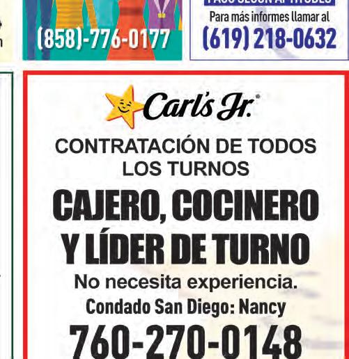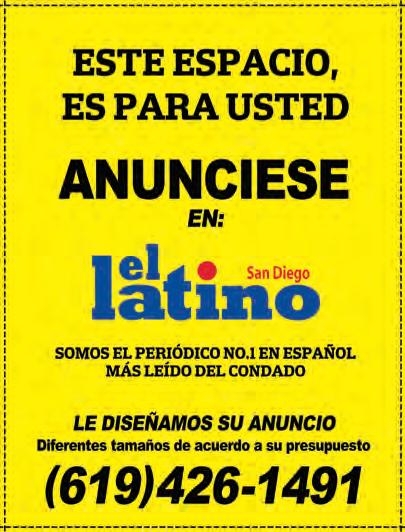 Ventas, Clasificados y Eventos. T: 619.426.1491 • sales@ellatino.net • 1105 BROADWAY SUITE #206 CHULA VISTA CA 91911 San Diego County’s Largest Hispanic Newspaper Cubriendo todo el condado de San Diego EDICIÓN 20 VOLÚMEN XXXV ESTABLECIDO EN 1988 www.ellatinoonline.com EJEMPLAR GRATUITO Encuentre dentro de esta edición los encartes MAYo 12 al 18, 2023