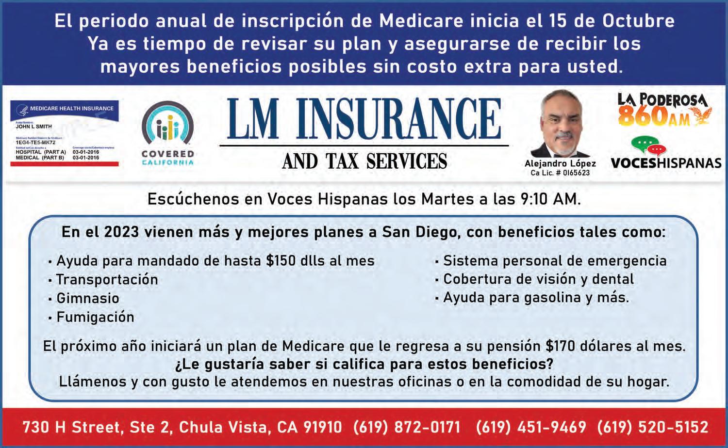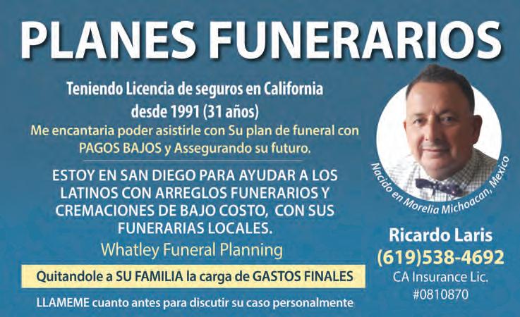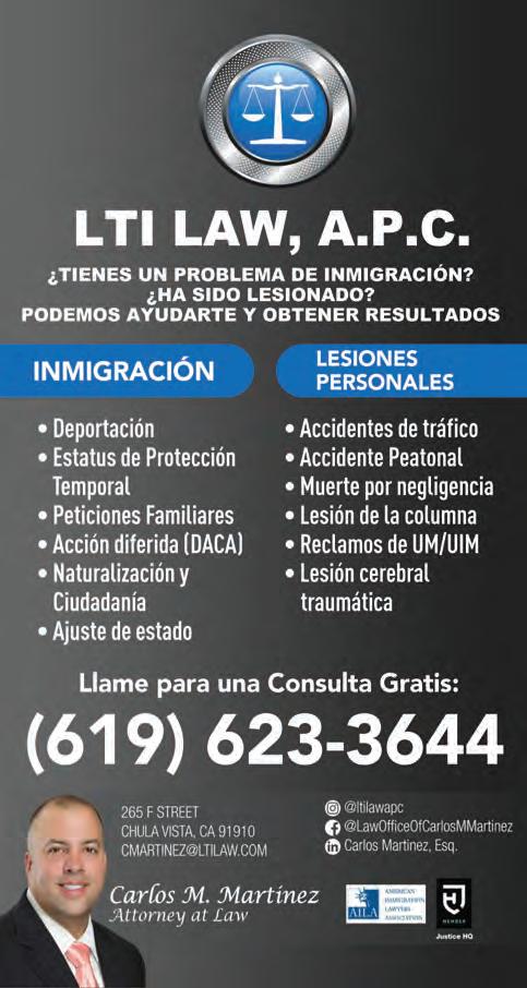 Ventas, Clasificados y Eventos. T: 619.426.1491 • sales@ellatino.net • 1105 BROADWAY SUITE #206 CHULA VISTA CA 91911 San Diego County’s Largest Hispanic Newspaper | Cubriendo todo el condado de San Diego EDICIÓN 42 VOLÚMEN XXXIV www.ellatinoonline.com OCTUBRE 14 AL 20, 2022 EJEMPLAR GRATUITO AL DÍA PÁG.10 ESTABLECIDO EN 1988 PROPONEN VIAJES SIN I-94