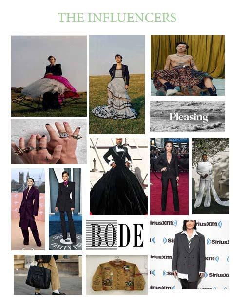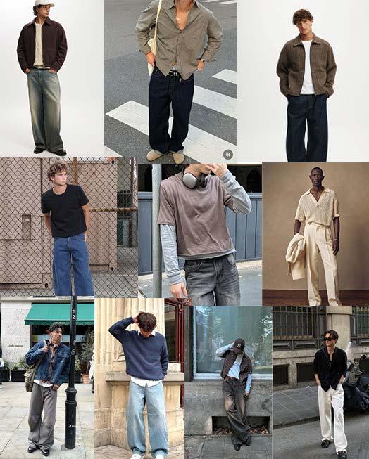As fashion is a sign of the times the way in which collections are produced reflect the way in which sociecty views the social norm. In todays society the casual look remains popular especially after COVID and the lockdowns which meant that everyone was staying home. The hyper masculine image is no longer as up held anymore due to the changes in which gender and sexuality has been more accepted so ens wear has seen the added touch of feminity