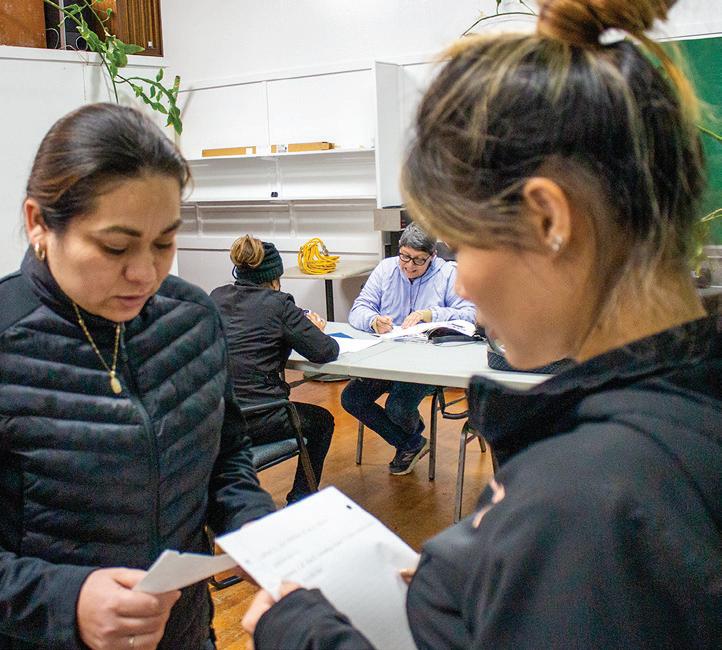 During the course, students can be found helping and studying with each other for the citizenship exam that many plan to take after the course ends.