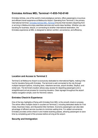 Emirates Airlines at Melbourne Airport’s Terminal 2 provides a seamless blend of efficiency, comfort, and luxury for international travelers From well-organized check-in counters and premium lounge access to diverse dining and shopping choices, the terminal is designed to meet the needs of modern passengers Whether departing to Dubai or connecting onward to global destinations, Emirates ensures that the journey from MEL Terminal 2 sets the tone for a world-class travel experience