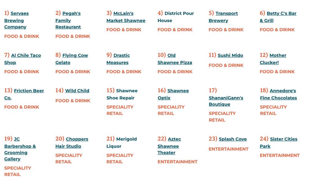 In Downtown Shawnee you'll find specialty retailers, services, corporate and small businesses, dining, drinking establishments, many festival style events, and much much more. Here are the top 20 points of interest in Shawnee!