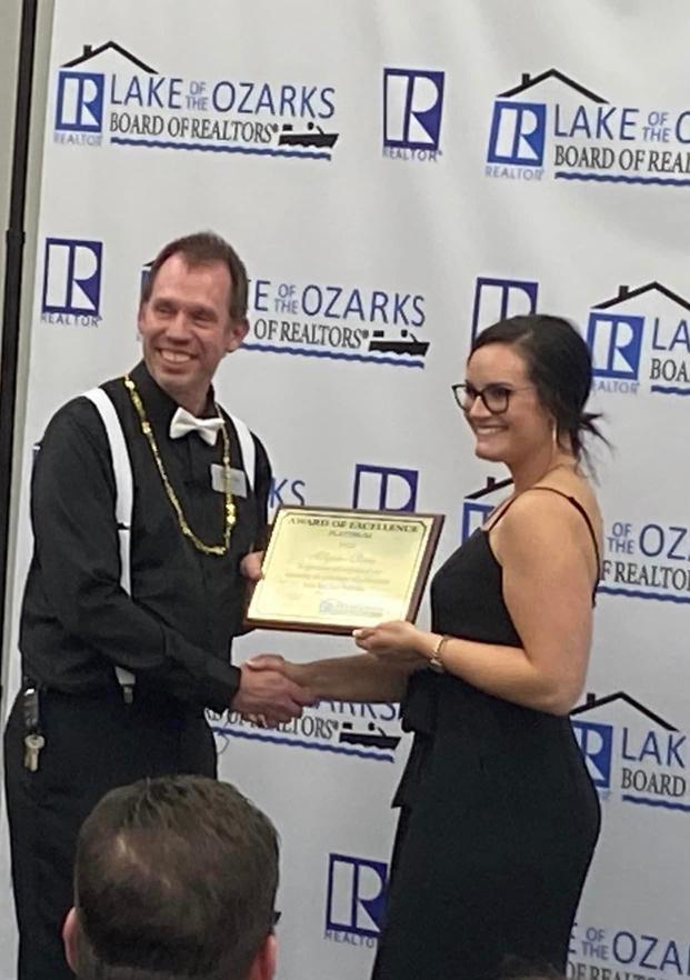 ALLYSON CLINE RECEIVING THE 2022 PLATINUM LEVEL AWARD OF EXCELLENCE AT TONIGHT’S LAKE OF THE OZARKS BOARD OF REALTORS AWARDS EVENT!