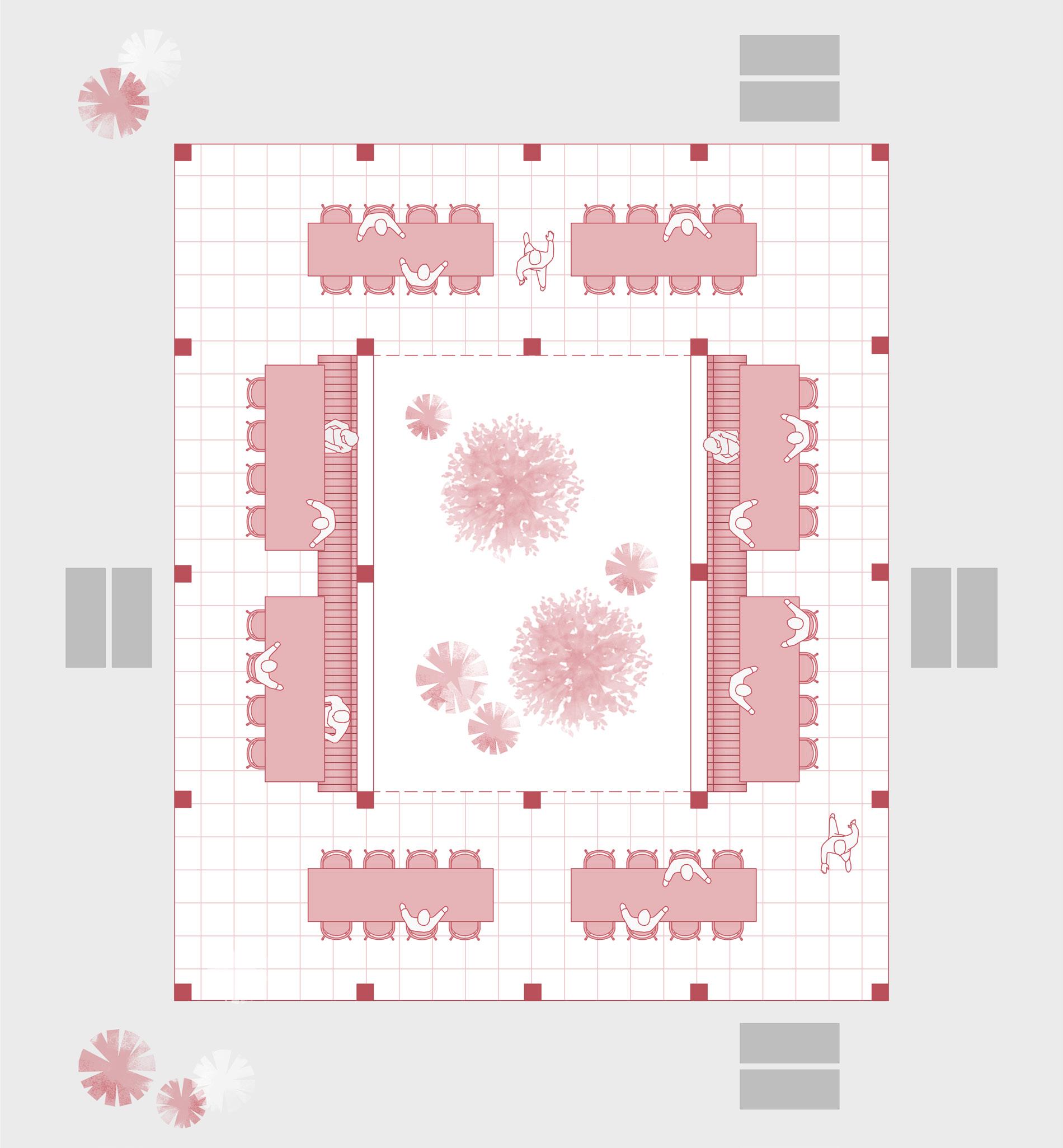 ώστε οι επισκέπτες να ενθαρρύνονται να συναναστραφούν και να δεθούν. 1. Χώρος ψυγείων 2. Χώρος Αποθήκευσης Τροφίμων 3. Αίθριο 4. Εξωτερική εστία 5. Πάγκος κουζίνας 6. Πάγκος - νησίδα 7. BBQ 1. Αίθριο 2. Τραπεζοκαθίσματα 1 1 22 3 4 5 6 7