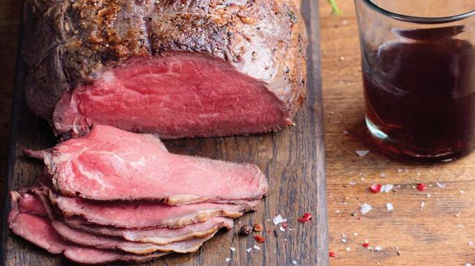 Baked Ham w/Raisin Sauce over Stuffing, Au Gratin Potatoes, Harvard Beets, WG Roll, Pineapple