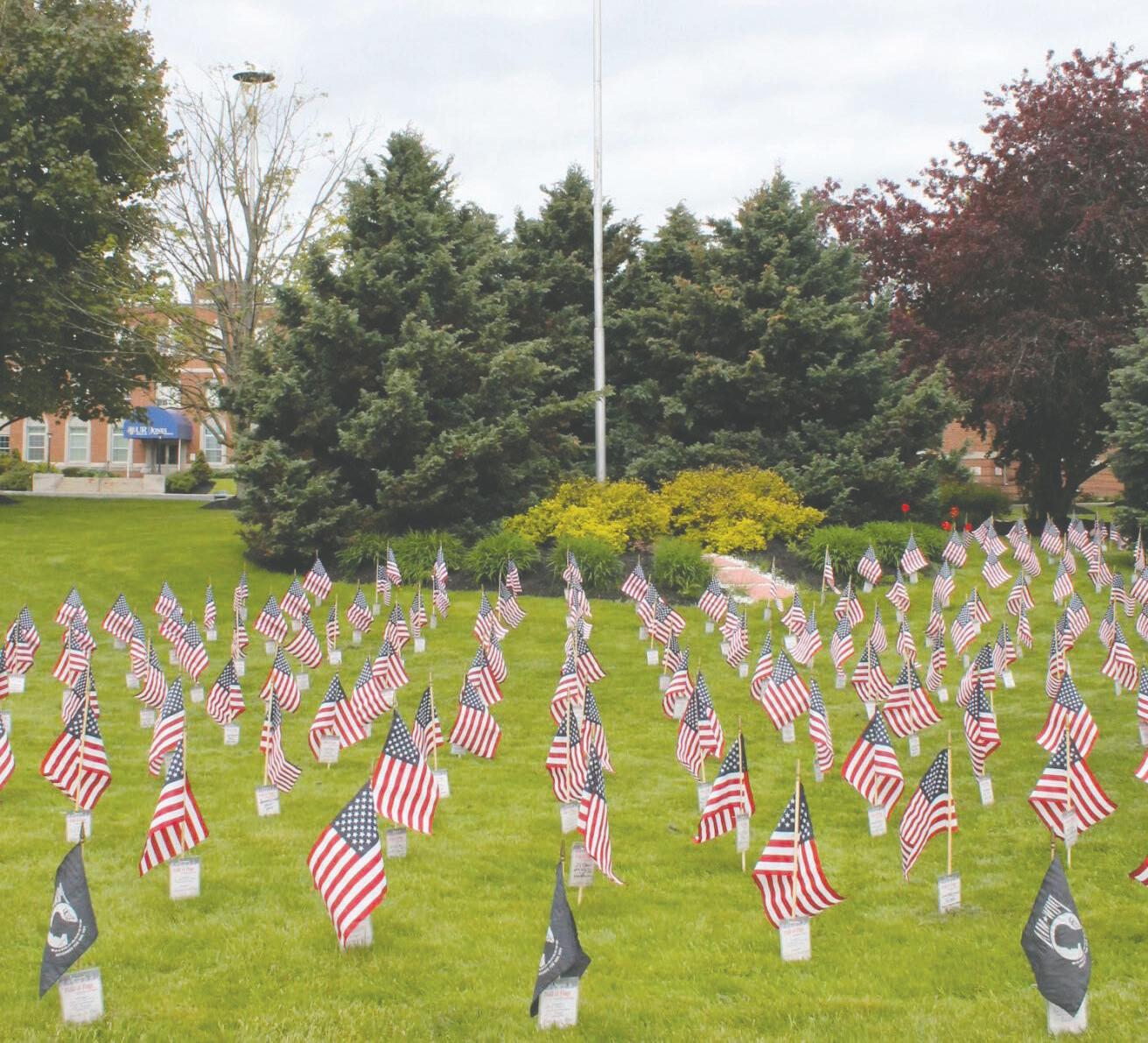 Since 2014, members of the Wellsville American Legion Riders and volunteers from JMH have spent Armed Forces Day putting up memorial flags on the front lawn of the hospi-