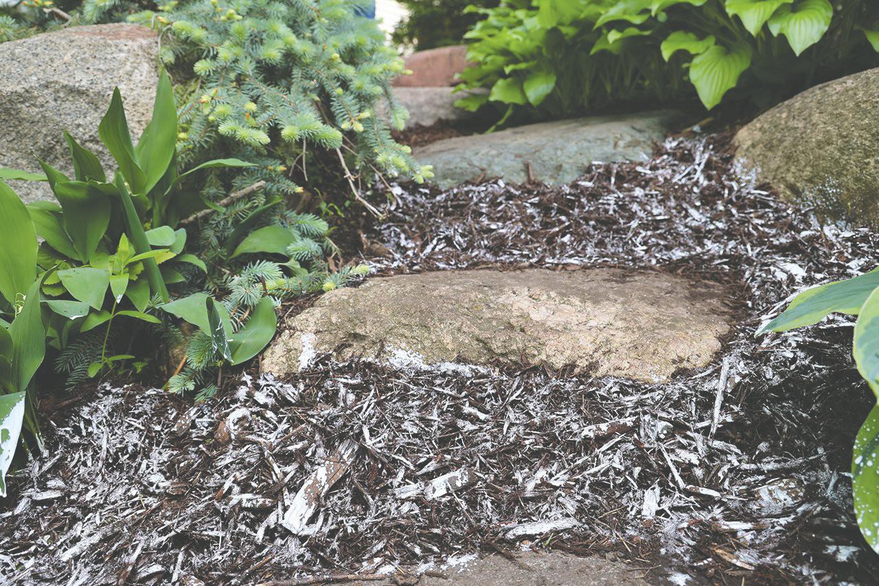 scape Loc Mulch & Rock Bond, an environmentally friendly compound that can be applied to keep mulch and landscape rock locked in place.