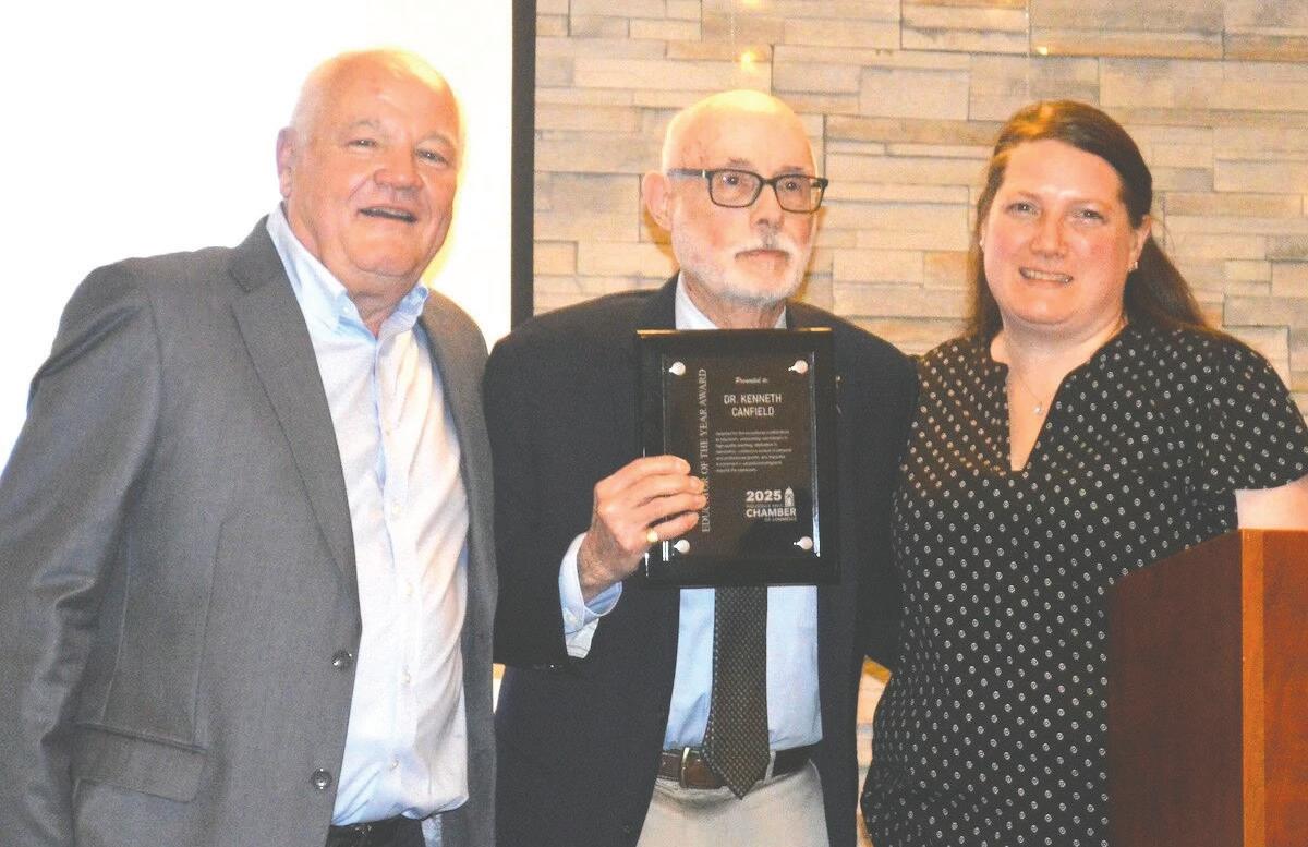 Dr. Kenneth Canfield (center) received the Wellsville Area Chamber of Commerce’s Educator of the
