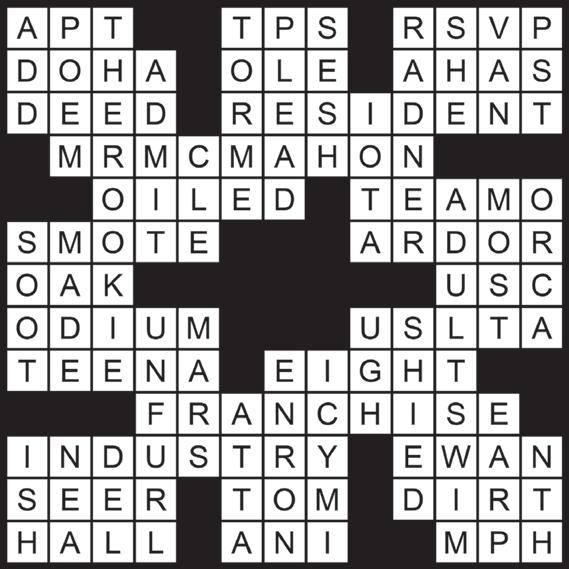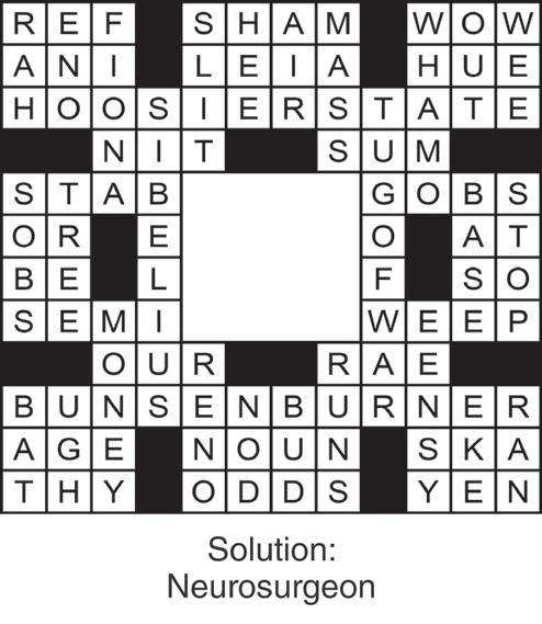 43. Cousin of calypso 44. Lord’s Prayer pronoun 45. Chances 46. Desire Down 1. Word of support 2. Rock musician Brian 3. Shrek’s spouse 4. Cut 5. Part of a giggle 6. Put on 7. Physics calculation 8. Hula Hoop manufacturer 9. Published 10. Lilliputian 15. “Finlandia” composer 16. Contest using a rope