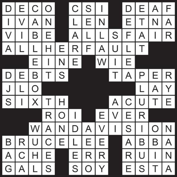 the Stars” cup) 14. European erupter 15. Sensation, slangily 16. Kim Kardashian series 18. Sarah Snook series 20. Article for Mozart 21. Golfer Michelle 22. Payables 24. Become narrower 28. Former “American Idol” judge, briefly 29. Put 30. ___ sense