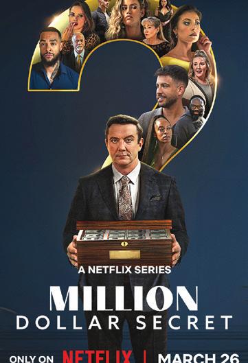 “Million Dollar Secret” - Season 1 (March 26) Twelve strangers enter a sumptuous lakeside estate and in each of their rooms is a mysterious welcome gift — a box. Eleven of them are empty and one contains $1,000,000, and it’s for that guest to keep — as long as they keep their identity hidden. Devilish games will reveal clues about the millionaire’s identity, and they must do whatever it takes to keep their Million Dollar Secret. Peter Serafinowicz hosts.
