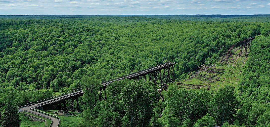 Smethport, the McKean County Historical Society offers a broader look at local history, including exhibits in the Old Jail. At Kinzua Bridge State Park, a modern Visitor Center near Mt, Jewett serves as the gateway to the Kinzua Skywalk, featuring exhibits on the viaduct once hailed as the “Eighth Wonder of the World.” Finally, the Historic Kane Depot and McCleery Discovery Center shares the story of the effort to save the Lobo wolf from extinction while celebrating the history of Kane, the Star in the Forest.
