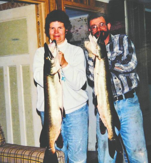 Early one fall morning my wife, Jane, and I were fishing a weed edge. A light breeze drifted us up to a 6-foot floating patch of weeds. Jane retrieved her No. 5 Mepps Muskie Killer within inches of them and just as she was about to lift the lure from the water a green-barred streak grabbed it in a flurry of white water. It was as savage a hit as I’ve ever seen, with spray flying explosively everywhere.