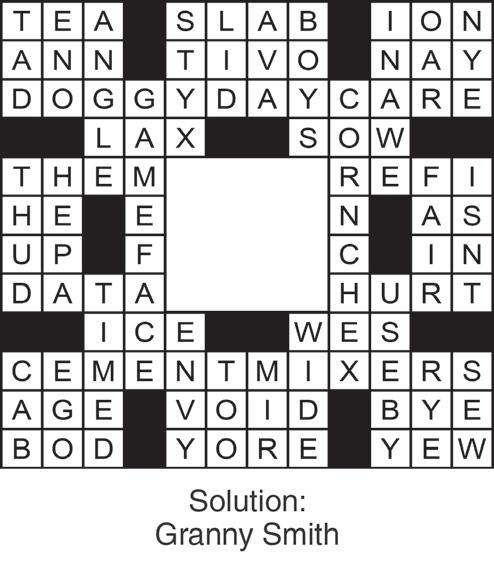 Down 1. Smidge 2. Roxy Music co-founder Brian 3. Perspective 4. Underworld river 5. Topper 6. The second Mrs. Sinatra 7. Word before and after “will be”