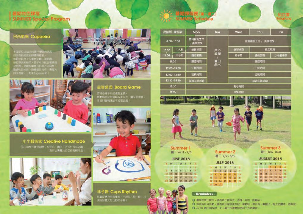 每年夏天 , 台北蒙特梭利幼兒園會例行舉辦對象不限本校孩子的暑期特別課程 , 總有許多 外校生與外國孩子熱情參加 , 一同玩耍學習共度暑假 。
