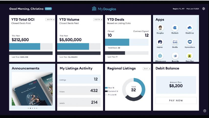 Technology at Douglas Elliman is designed to streamline, simplify, and supercharge the agent experience. From innovative business platforms to data-driven tools and mobilefirst solutions, our tech ecosystem empowers agents to work smarter, stay connected, and deliver results at every stage of the real estate journey.