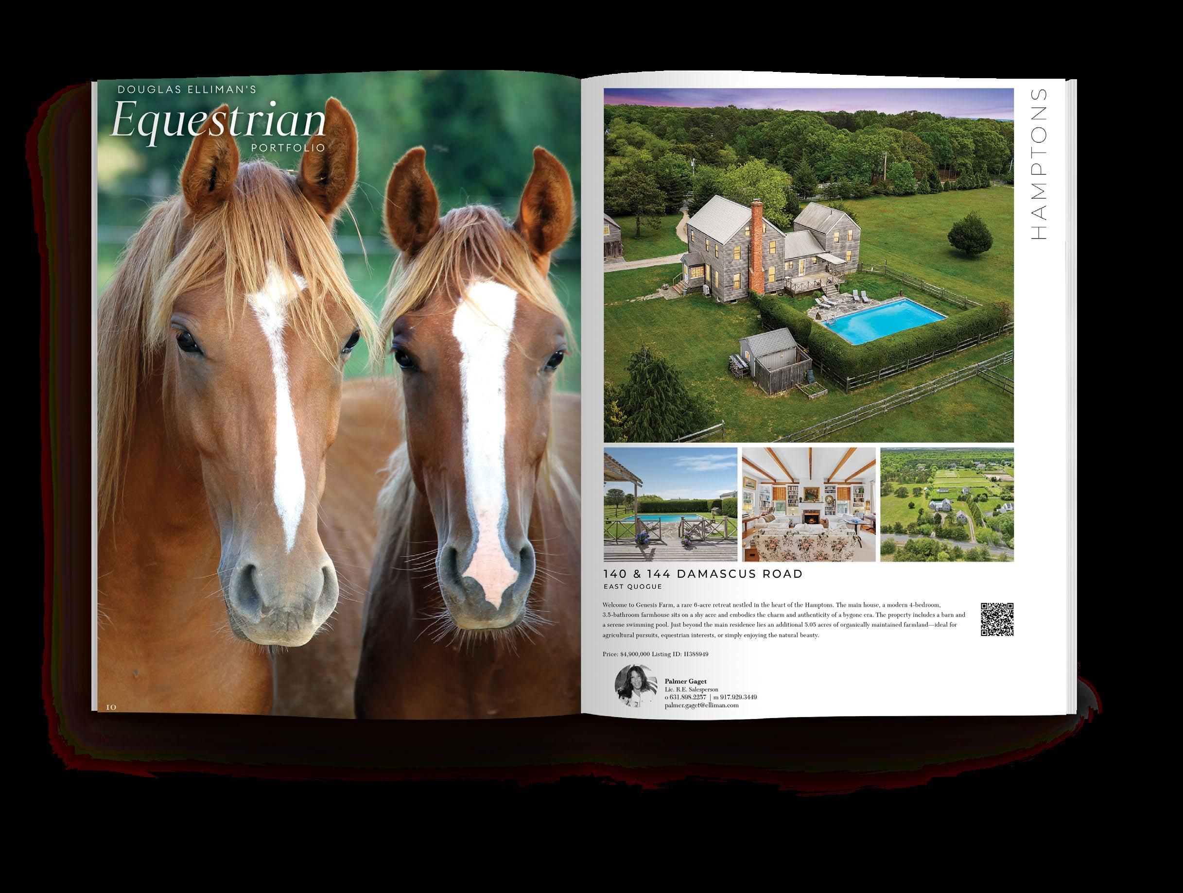 Our proprietary publication, Douglas Elliman Equestrian, offers a seamless blend of curated, equestrian-focused content infused with the finest listings from our Farm and Ranch division and Equestrian portfolio.