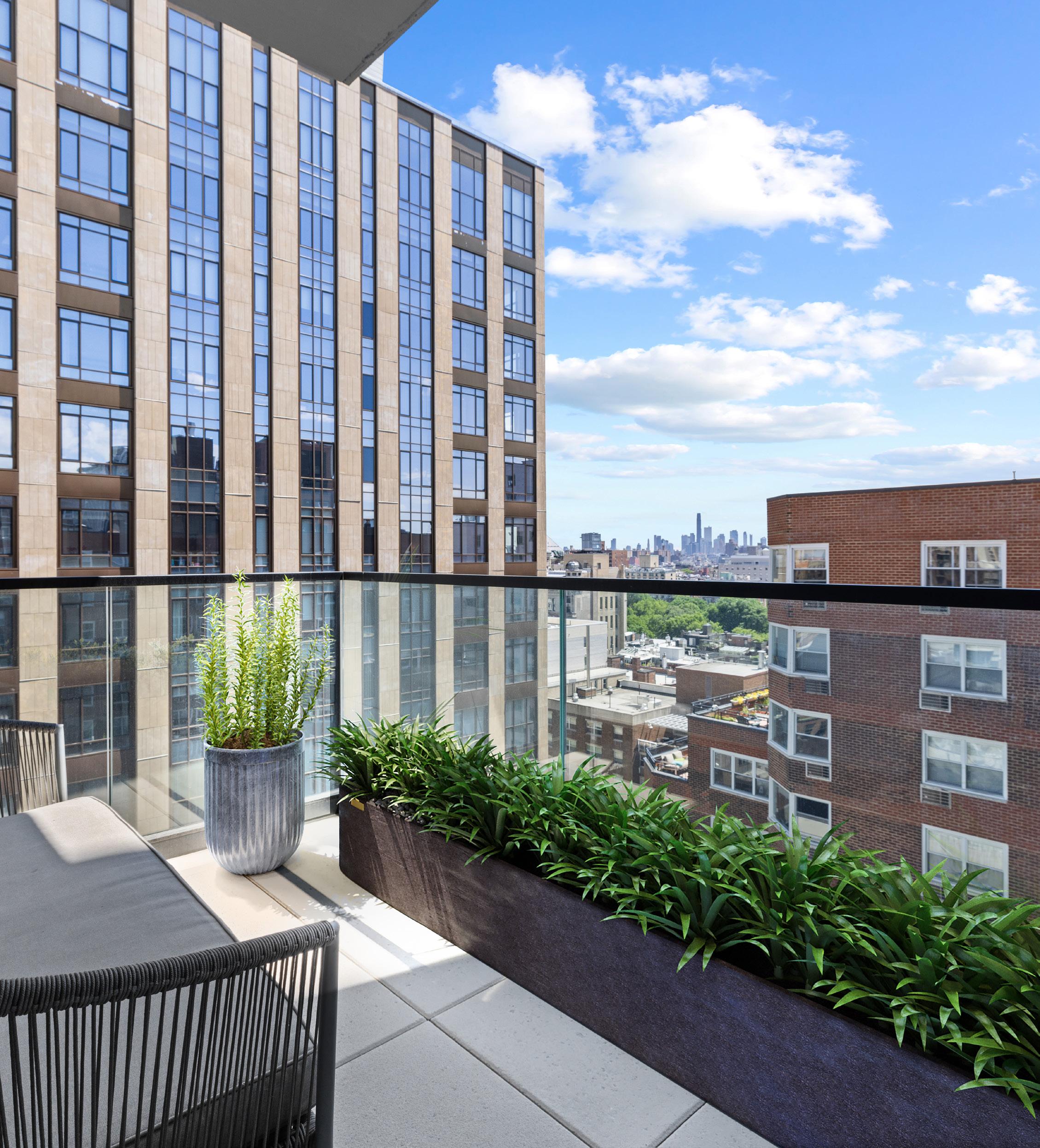 Encompassing 1,052 SF, this two-bedroom, two-bath residence epitomizes luxury and modern sophistication, complemented by an intimate 51-square-foot private terrace that offers breathtaking views of the Midtown skyline. This exclusive outdoor space, directly accessible from the living room, provides an ideal retreat for both relaxation and entertainment.
