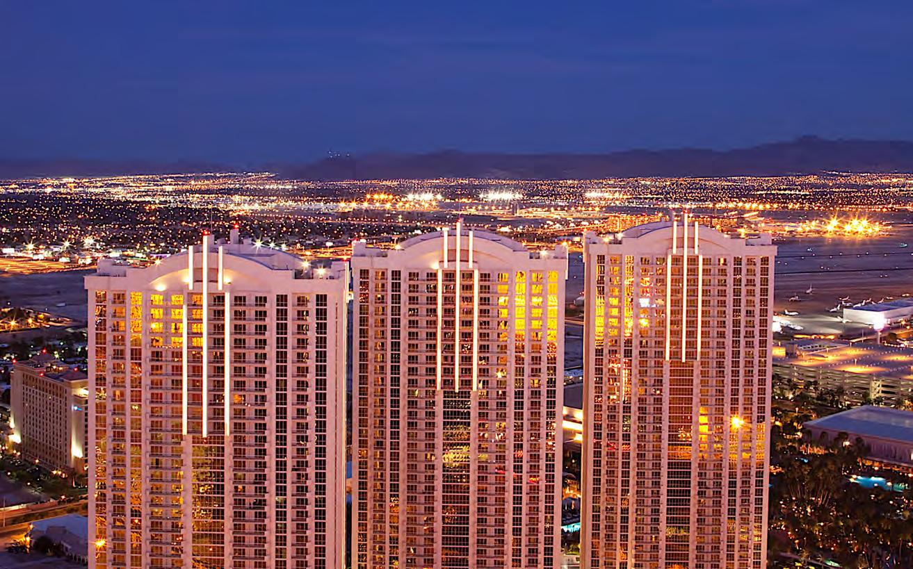 Towering over the Las Vegas Strip like an aqua blue wave, Panorama Towers provides discriminating buyers a unique opportunity to live well in a more intimate environment. Panorama Towers offers a wealth of options in one and two-bedroom residences that range from 750 to 14,000 square feet and offer spectacular views of the Strip to the east and colorful beauty of Red Rock Canyon to the west. Panorama Towers is a world unto itself featuring his and hers spa facilities, a resort style pool with lounge areas, yoga and Pilates studio, indoor racquetball court and, best of all, 24-hour concierge service.