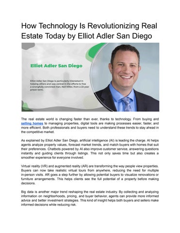 Elliot Adler San Diego, a successful businessman in San Diego, believes in going beyond the minimum of providing charitable donations and instead makes volunteering a cornerstone of his philanthropy. He understands that being actively involved in local charities offers numerous opportunities to make a meaningful impact in the community. Moreover, he has always encouraged his fellow employees to participate in volunteer activities during his previous roles. One of Adler's favorite volunteering experiences is his involvement in youth basketball leagues. He has actively contributed by donating funds to cover essential expenses such as uniforms, league fees, and equipment for inner-city leagues. Additionally, he volunteered as a coach for a high school varsity boys' basketball team in San Diego for two years, dedicating his time and expertise to helping develop young athletes. Adler also commits his volunteer efforts to Mama's Kitchen, a local non-profit organization that supports San Diego residents with critical illnesses. The organization aims to prevent additional health concerns caused by malnourishment by providing nutritional assistance through meal preparation and delivery. Adler has dedicated several hours to personally delivering meals to individuals in need, contributing to Mama's Kitchen's mission. Driven by his passion for helping others, Adler played a central role in freeing Neil Miller, a wrongfully convicted man, from a 22-year prison term. Through diligent research and the discovery of crucial DNA evidence, Adler contributed to the dismissal of Miller, who had already served 10 years for a crime he did not commit. This case highlights Adler's dedication to justice and his commitment to working with organizations like the Innocence Project, which strives to restore freedom to individuals wrongfully accused and convicted of crimes.