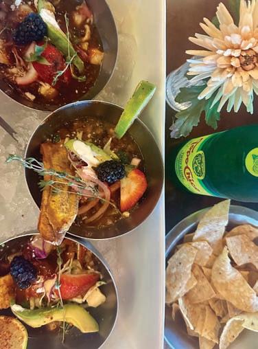 DINING IN WACO After a fabulous meal at Red Herring and a picture-perfect grazing board picnic at Song Bird, I tried several other restaurants during my stay. Milo's has a fresh urban vibe with so many live plants, photo ops and a clean design. The jalapeño deviled eggs and chicken Caesar salad were delish! I've had several great Tex-Mex meals at Hecho en Waco, and L&L Hawaii and Segovia Wine Bar are also in the same strip. Revival Eastside Eatery has a yummy cheeseburger and sweet potato fries. It is located on the other side of the river from the downtown area where there is a lot of exciting change happening. At Magnolia Market at the Silos, I like to picnic in the food truck area with avocado toast from Magnolia Table paired with a strawberry basil lemonade from Pop's Lemonade! If you have a sweet tooth, try Milk Bottle Cookies, Hey Sugar or Splendid Oaks. I had a super fun experience meeting Chef Sebastian, and his sons, at Huaco Lounge. He is passionate about the art of food from the heart of Mexico fused with contemporary techniques! He presented an ahhhh-mazing spread with a beautiful presentation of three trios: queso blanco, guacamole, and salsa; then three of the best ceviches I've ever had, and a mini flight of margaritas to prove he has nailed some signature flavors that I have not found anywhere else.