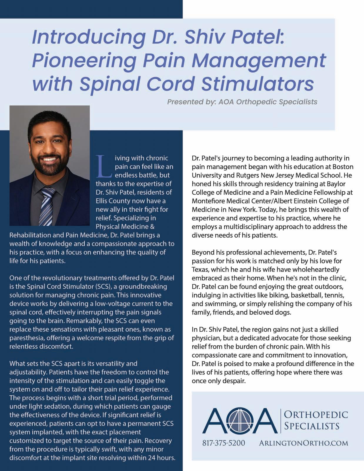 DR. SHIV PATEL Pioneering Pain Management with Spinal Cord Stimulators